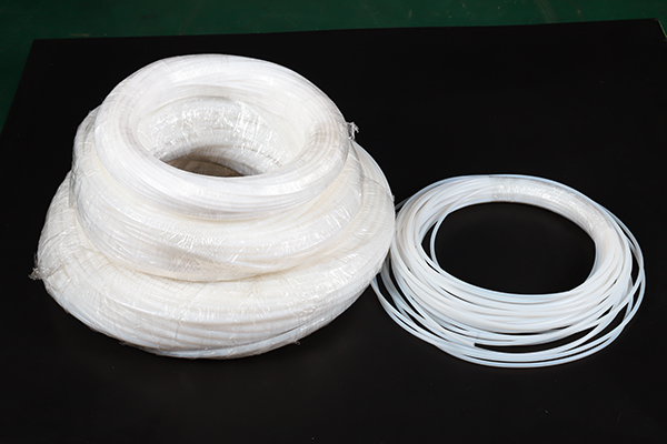 PTFE线是用聚四氟乙烯高压分散树脂添加助剂混合成糊状,经压坯挤出后脱脂烧结而成。根据不同的需求可制成不透明和半透明。由于聚四氟乙烯具有耐腐蚀、耐老化、不粘、自润滑、绝缘性好能在-